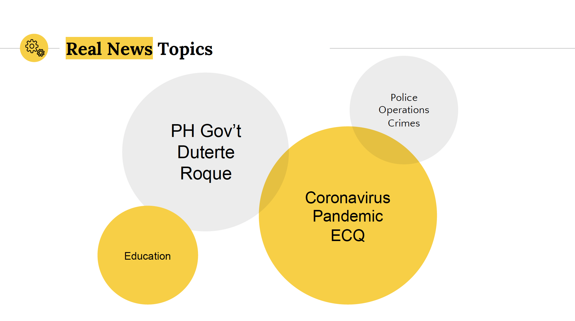 Applying LDA on the dataset with 10 topics and 100 passes, we were able to identify key topics in both legitimate and fake news classes. Fake and legitimate news sites generally discuss common topics in the Philippines. However, fake news sites topic mainly centers on political figures.
